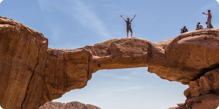 Whether you're perched or seated atop the Burdah rock bridge, you'll relish the breathtaking vistas of the yellow and red desert along with its mountainous terrain. You can embark on a hike to reach the summit for an awe-inspiring 360-degree panorama. Take a moment to sit, meditate, and savor the rewards of your journey.