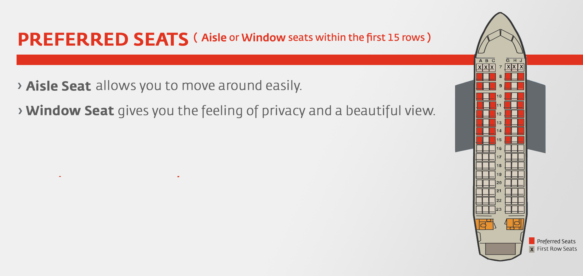 Ücretli koltuk seçiminizi aşağıdaki kategoriler arasından yapabilirsiniz:
